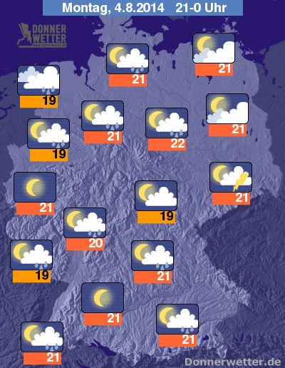 Heute Abend sind bei vielfach dichten Quellwolken doch noch verbreitet Schauer und Gewitter unterwegs, zeitweise kann es aber auch auflockern. Besonders im Westen und in Teilen Süddeutschlands reißt der Himmel vielfach auf und es bleibt nachfolgend auch trocken. Bei sehr einheitlichen Temperaturen von 22 bis 19 Grad lässt es sich draußen gut aushalten, allerdings sind die möglichen Schauer und Gewitter vielerorts doch eher ein Argument für's innerhäusliche Dasein.