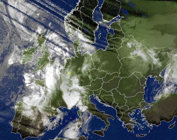 Auf dem Satellitenfoto von heute Morgen zeigt sich die Westhälfte des europäischen Kontinents häufig unter dichter Bewölkung. Ein Gewittertief über Südfrankreich sorgt mit seinen Ausläufern nicht nur dort, sondern auch über dem Nordwesten von Italien für regional schwere Unwetter mit Starkregen, Hagel und möglichen Sturmböen.
