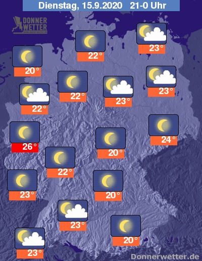 Unter sternenklarem oder nur leicht bewölkten Himmel gehen die Temperaturen bis Mitternacht allmählich zurück, bleiben aber für die Jahreszeit ungewöhnlich warm.