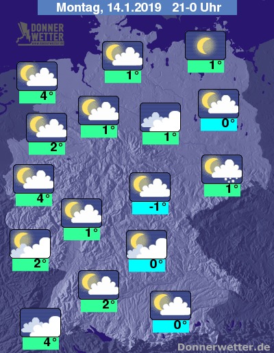 Am Abend fallen entlang der Elbe sowie im Erzgebirge und an den Alpen noch Schneefälle, in den übrigen Landesteilen bleibt es meist trocken. Der Himmel zeigt sich dabei teils bedeckt, teils aufgelockert bewölkt.