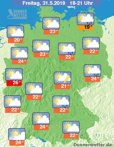 Die Temperaturen liegen am frühen Abend zwischen 19 Grad an der See und 26 Grad im Ruhrgebiet.