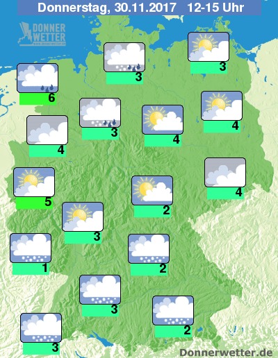 Die Höchstwerte liegen dabei in der Regel noch etwas niedriger als an den vorangegangenen Tagen. Zwischen Niederrhein und Nordsee reicht es am Nachmittag zumindest noch für Temperaturen um die 5 Grad, im südlichen Bayern und Baden-Württemberg liegen die Höchstwerte hingegen um den Gefrierpunkt oder sogar leicht darunter.