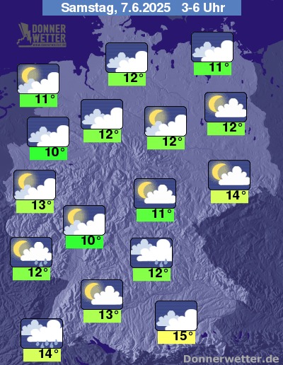 In der Nacht zum Samstag ist der Himmel wechselnd oder stark bewölkt. Die Schauer lassen dabei zunächst nach, im weiteren Verlauf zieht im Süden und Westen dann neuer Regen auf.