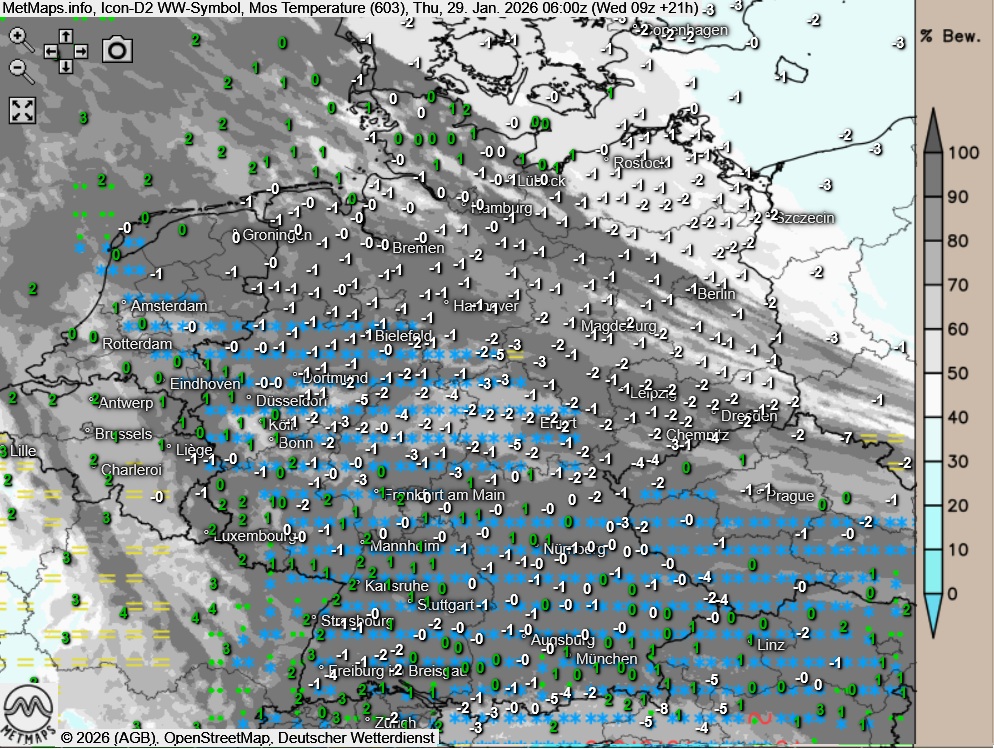 Höchstwerte am Donnerstag um -1 bis 3 Grad.