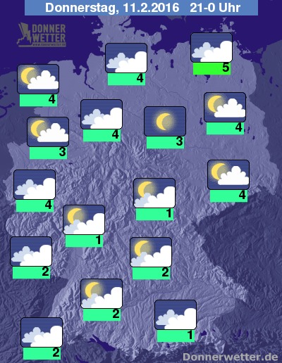 In der Nacht zum Freitag bleibt es über Schleswig-Holstein und Mecklenburg-Vorpommern meist stark bewölkt bei gelegentlich etwas Regen, vom Emsland bis in die Lausitz ist der Himmel locker bewölkt oder klar und es bleibt trocken, sonst ist zunächst verbreitet locker bis aufgelockert bewölkt und trocken. Im Nachtverlauf ziehen nach Süden hin jedoch dichte Wolken auf und es fällt zeitweise Regen, Schneeregen oder Schnee, dabei besteht erhöhte Glättegefahr! Die Temperatur sinkt auf 4 Grad in Dresden und bis -1 Grad im Saargau.
