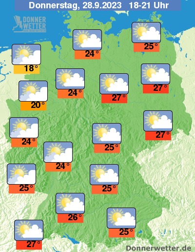 Heute Nachmittag zeigt sich das Wetter überwiegend heiter bis sonnig. Hier und da können aber auch mal mehr Wolken durchziehen, dabei bleibt es aber trocken. Die Temperatur liegt bei 18 Grad an der Nordseeküste und etwa 27 Grad im Oberrheingraben.