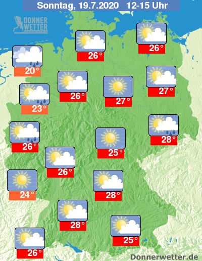 Heute Abend ist es aufgelockert oder stark bewölkt, es können sich gebietsweise Schauer und südlich des Mains sowie über Sachsen auch örtliche Gewitter bilden. Die Temperatur liegt noch bei 20 Grad in Cuxhaven und bis 28 Grad in Stuttgart.