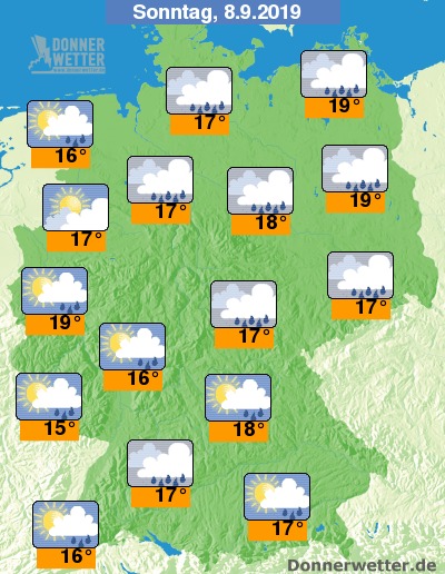 Am Sonntag zeigen sich hier und da Auflockerungen, oft ist es aber auch stark bewölkt, dabei bilden sich gebietsweise Schauer, örtlich entwickeln sich auch Gewitter. Die Temperatur steigt auf 15 Grad im Saargau und bis 19 Grad in Berlin.