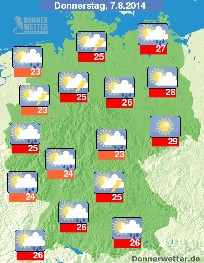 Nach einer Wetterberuhigung zur Wochenmitte hin bleibt es auch darüber hinaus häufig freundlich. Atlantische Tiefausläufer mit feuchtwarmen Luftmassen ziehen aber vor allem ab Donnerstag hin und wieder von Westen herein, wobei das Schauer- und Gewitterrisiko nach Osten hin allgemein abnimmt. Das Wochenende sollte insgesamt bei häufigem Sonnenschein freundlich werden, wobei besonders nachmittags und konzentriert auf die Westhälfte des Landes mit Schauern und Gewittern gerechnet werden sollte. Die Temperaturen bleiben fast durchweg im sommerlichen Bereich, nach Werten zwischen 23 und 29 Grad am Donnerstag, sind am Wochenende verbreitet auch wieder über 30 Grad C möglich.