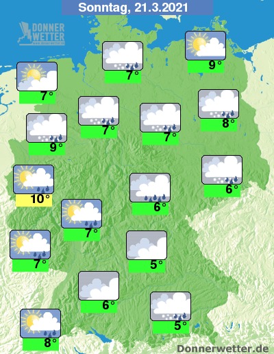 Am Sonntag ziehen überwiegend dichte Wolken durch, Auflockerungen sind zumindest mal möglich. Aus Norden her fällt vorübergehend etwas Regen, zum Teil auch Schneeregen oder Schnee, im übrigen Bundesgebiet bleibt es meist trocken. Die Temperatur steigt auf 5 Grad in Franken und bis 10 Grad im Rheinland.