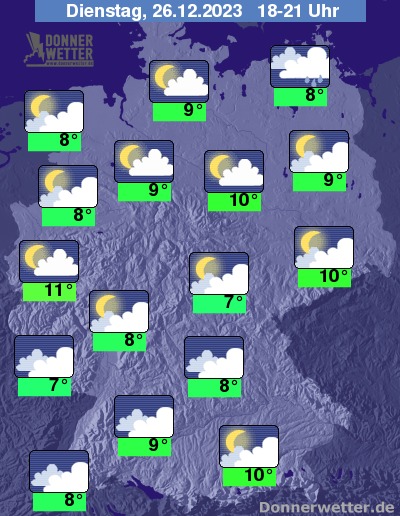Heute Abend ist es vielerorts aufgelockert, teilweise aber auch dicht bewölkt, dabei fällt nur noch ganz vereinzelt etwas Regen. Die Temperatur liegt bei 7 Grad in Saarbrücken und rund 11 Grad in Köln. Der Wind lässt verbreitet nach und weht lediglich an der Ostsee noch teils stürmisch.