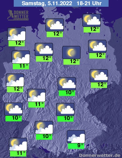 Heute Abend zieht es sich über der Westhälfte mehr und mehr zu, oft ist es aber auch noch aufgelockert bewölkt. Weiter nach Osten hin ist der Himmel mehrheitlich locker bewölkt oder sternenklar. Es bleibt landesweit trocken bei 9 Grad in München und etwa 12 Grad in Hamburg.