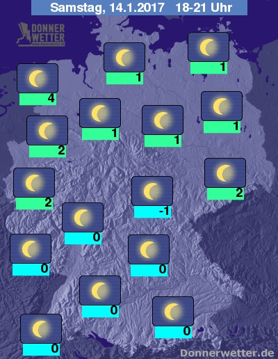 Heute Abend klart der Himmel verbreitet auf, dazu bleibt es trocken. Die Temperatur liegt bei Werten zwischen -1 und 4 Grad. An der Nordsee weht ein starker bis stürmischer Wind.