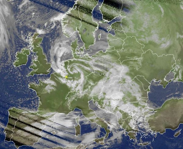 Auf dem Satellitenfoto von heute Morgen ist ein Tiefdruckwirbel über dem Westen Deutschlands zu erkennen, hierbei handelt es sich um das Schneetief "Emma", das weiten Teilen Deutschlands Schneefälle und auch verbreitet eine geschlossene Schneedecke beschert. Im weiteren Verlauf zieht sich das Tief unter Abschwächung nach Osten ab und bringt mit seinem Ausläufer vor allem im Alpenvorland teils kräftigen Schneefall.