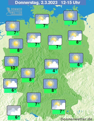 Heute Nachmittag ist es überwiegend heiter oder sonnig. Südlich des Mains ist es zum Teil auch stark bewölkt oder neblig-trüb. Es bleibt bundesweit trocken bei Temperaturen von 4 Grad im Eichsfeld und bis 10 Grad im Rheinland.