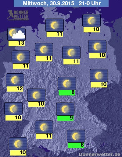 Heute Abend zeigt sich der Himmel über Deutschland weitgehend sternenklar, nur im Nordseeumfeld sind ein paar lockere Wolken möglich. Dazu bleibt es überall trocken. Die Abendtemperatur liegt bei 13 Grad in Cuxhaven und etwa 8 Grad im Chiemgau.