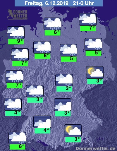 Bis Mitternacht kommt der Regen etwas weiter nach Süden und Osten voran. Achtung in den Übergangsgebieten kann es auf gefrorenem Boden stellenweise zu gefährlichem Glatteis kommen. In Sachen, Teilen von Bayern und Baden-Württemberg bleibt es zunächst noch trocken.
