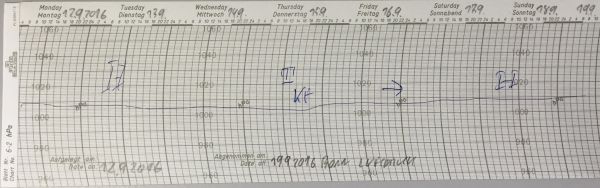 Die Entwicklung des Wetters während der vergangenen Woche spiegelt sich gut im aufgezeichneten Luftdruckverlauf wider. Zu Wochenbeginn bestimmt sonniges und heißes Hochdruckwetter das Geschehen. In Richtung Wochenende näherte sich dann von Westen her eine Kaltfront mit Tief "Stephanie", das vor allem dem Süden ergiebige Niederschläge brachte. Inzwischen steigt der Luftdruck wieder und lässt uns auf die kommenden Tage hoffen. Es wird dann zwar nicht mehr ganz so warm wie noch vergangene Woche, dennoch sollte es für zahlreiche Sonnenstunden reichen.