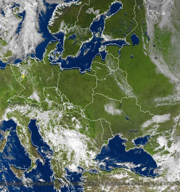Auf dem Satelittenfoto von heute Vormittag zeigen sich weite Teile von Nord-, Mittel- und Osteuropa wolkenlos oder gering bewölkt, nur gebietsweise, wie bspw. im Tal der Donau in Süddeutschland hielt sich noch hartnäckiger Nebel oder Hochnebel. Sehr viele und dichte Wolken sind über dem Balkan zu erkennen, hier bringt ein ausgedehntes Tiefdrucksysytem sehr wechselhaftes Wetter mit Schauern und Gewittern.
