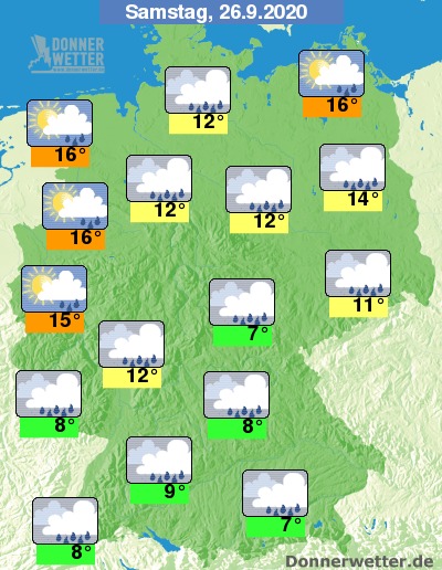 Heute bleibt es am Vormittag im Norden und Nordwesten noch trocken und teilweise locker bewölkt. Sonst und im übrigen Bundesgebiet ist es hingegen verbreitet bedeckt oder es zeigen sich nur kurze Auflockerungen, dabei fällt zeitweise Regen, im Westen bilden sich Schauer. Die Temperatur steigt auf 7 Grad im Vogtland und bis 16 Grad im Emsland.