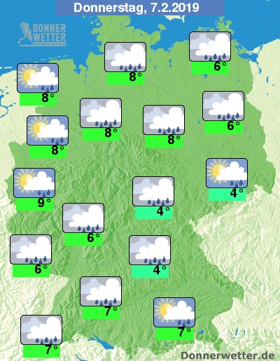 Dichte Wolken bringen zeit- und gebietsweise Regen, dieser kann in einigen kalten Mittelgebirgstälern stellenweise noch zu Glatteis gefrieren. Anfangs gibt es über Sachsen und Bayern noch einige Aufheiterungen, später dann hinter der Front von der Kölner Bucht bis ins Emsland.