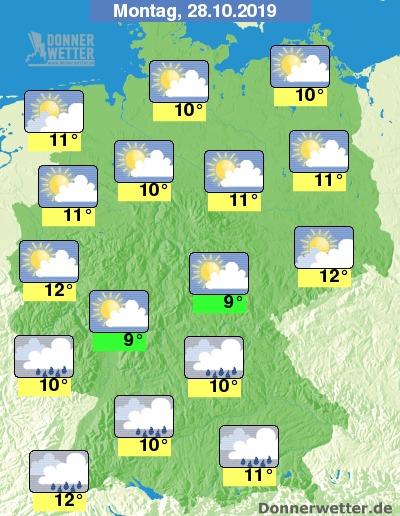 Heute bleibt es im Süden Deutschlands bedeckt und es fällt hier zeitweise Regen. Im übrigen Bundesgebiet ist es hingegen verbreitet heiter bis wechselnd bewölkt, dabei sind an der Nordsee lokale Schauer möglich, sonst bleibt es weitgehend trocken. Die Temperatur erreicht 9 Grad im Grabfeld und bis 12 Grad entlang des Rheins.