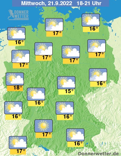 Heute Abend bleibt es weiterhin überwiegend heiter bis sonnig, hier und da können auch einige Wolken durchziehen. Bei Werten von 15 Grad in Erfurt und rund 18 Grad in Köln bleibt es landesweit trocken.
