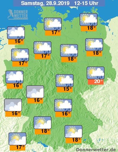Heute Abend bringen dichte Wolken dem Norden vielerorts Regen, auch über der breiten Landesmitte ist es oft stark und nur hier und da aufgelockert bewölkt, dazu bleibt es mehrheitlich trocken. Am freundlichsten mit einigen Aufheiterungen und nur ganz seltenen Schauern ist es im Süden des Landes. Die Temperatur liegt bei 15 Grad in Erfurt und bis zu 20 Grad in Dresden.