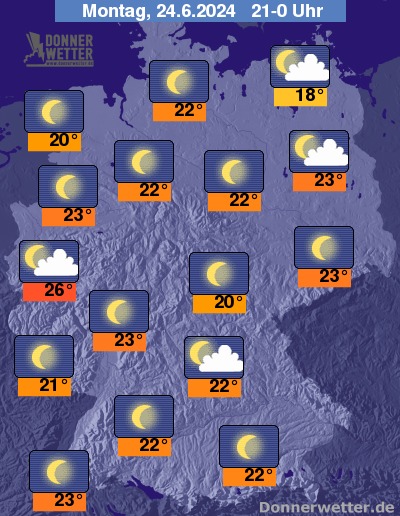 Die Temperaturen gehen in den Frühstunden zurück auf Werte um 16 bis 11 Grad.