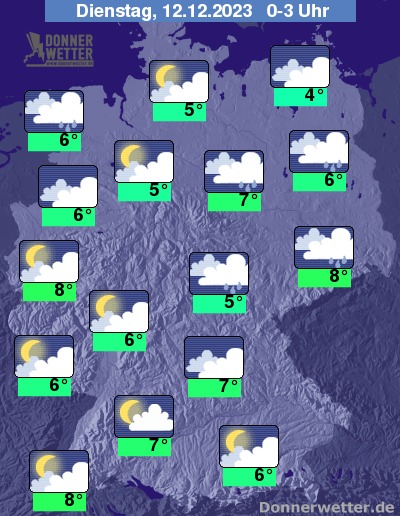 Temperaturen am Nachmittag um 6 bis 12 Grad.