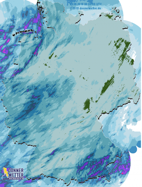 Regenradarbild von Montag, 13.August 2018