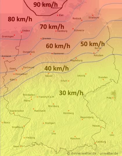 Heute bleibt es über der Osthälfte noch meist locker oder aufgelockert bewölkt und dabei auch trocken, in den übrigen Landesteilen ziehen von Westen her zunehmend dichte Wolken herein und nachfolgend fällt auch häufig kräftiger Regen. Die Temperatur steigt auf 7 bis 11 Grad. Besonders in den Nachmittags- und Abendstunden frischt der Wind über dem Westen und Norden stark auf, an der See ist es verbreitet stürmsich.