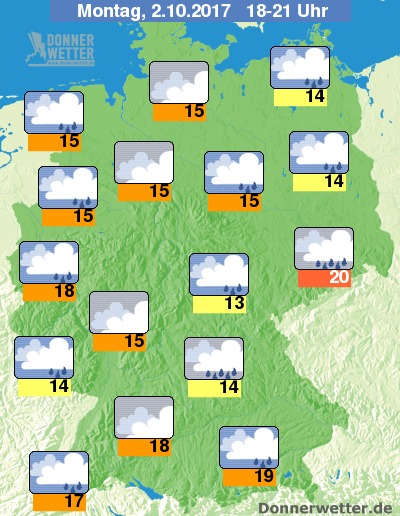 Heute Nachmittag bleibt es über Deutschland verbreitet stark bewölkt, nur über Bayern und Sachsen ist es anfangs noch meist aufgelockert bewölkt und trocken, sonst fällt hingegen zeitweise Regen. Die Temperatur steigt auf Werte zwischen 13 Grad im Grabfeld und etwa 21 Grad in der Lausitz.
