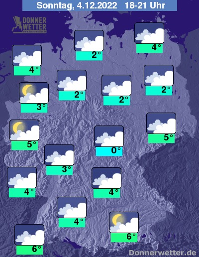 Heute Abend bleibt der Himmel über dem Land verbreitet bedeckt oder trüb, vor allem über der Mitte des Landes und im Osten herrscht auch zum Teil zäher Nebel. Es bleibt weitgehend trocken bei 0 Grad im Eichsfeld und bis 6 Grad im Breisgau.