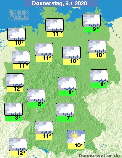 Die Höchsttemperaturen liegen bei winteruntauglichen Werten von 7 bis 13 Grad.