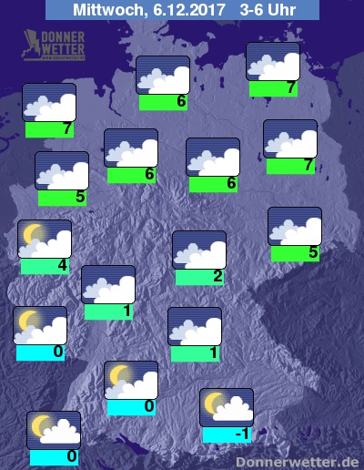 In der Nacht zum Mittwoch bleibt es über der Nordhälfte Deutschlands verbreitet trüb, dabei kann hier und da nur etwas Sprühregen fallen. Im äußeren Westen und Süden ist der Himmel oft auch nur locker bewölkt oder sternenklar, dazu bleibt es hier trocken. Die Temperatur sinkt auf 7 Grad an den Küsten und bis -1 Grad am Alpenrand. An Nord- und Ostsee weht ein teils stürmischer Wind.