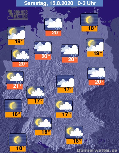 Während der zweiten Nachthälfte treten noch örtliche Schauer im Münsterland und im Osten auf. In den anderen Gebieten bekommen die Wolken größere Lücken und insbesondere im Südwesten klart der Himmel auch für längere Zeit auf.