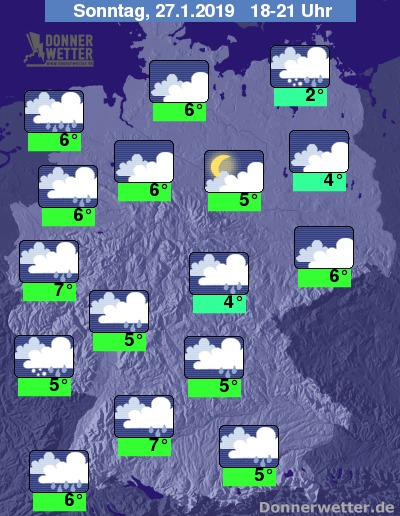 In der Nacht zum Montag zieht weitgehend dichte Bewölkung durch, dazu fällt mit Ausnahme des Ostens und Südostens zeitweise Regen, zunehmend auch Schneeregen oder Schnee. Die Temperatur sinkt auf 5 Grad in Köln und bis 1 Grad in München.