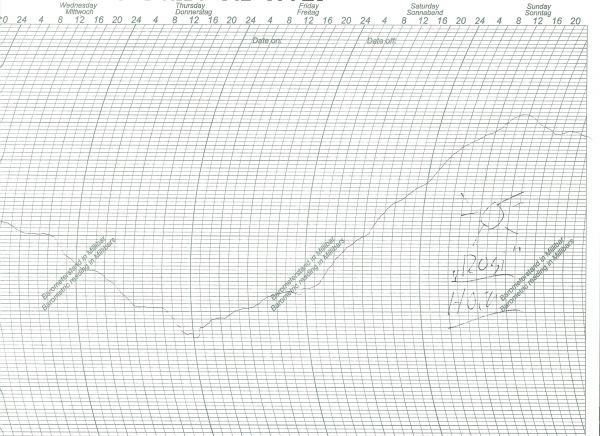 Hoch "Rosi" versorgt uns auch in den nächsten Stunden mit bestem Altweiberwetter - der Schrieb zeigt der Luftdruckverlauf inkl. Hoch "Rosi" an unserer Wetterstation in Bonn im Zeitraum vom 18. bis 24.09.2023: