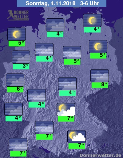 In der Nacht zum Sonntag ist es über dem Land verbreitet sternenklar, hier und da sind einige Wolken möglich. Es bildet sich häufig Dunst und stellenweise Nebel, dazu bleibt es trocken. Die Temperatur sinkt auf 8 Grad in Dresden und bis 3 Grad im südlichen Emsland.