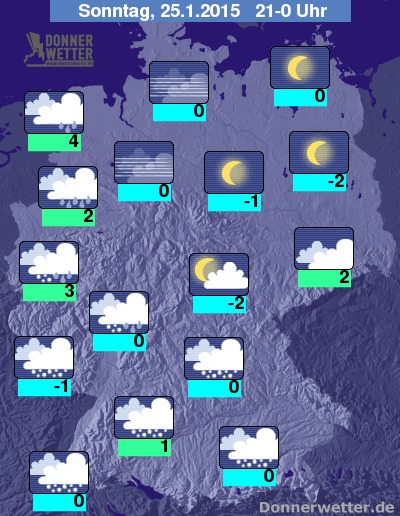 Heute Abend bleiben die Wolken über der Südwesthälfte Deutschlands weitgehend dicht und im Süden fällt häufig Schnee, im Westen fällt der Niederschlag meist als Regen oder Schneeregen, teils aber auch als Schnee, dazu kann es weiterhin sehr glatt auf den Straßen sein. Weiter nach Nordosten hin ist der Himmel dagegen häufig sternenklar, gebietsweise ist es auch trüb, dabei ist stellenweise auch Nebel möglich. Es bleibt trocken. Die Abendwerte liegen bei 4 Grad am Dollart und bei -2 Grad in großen Teilen Brandenburgs.