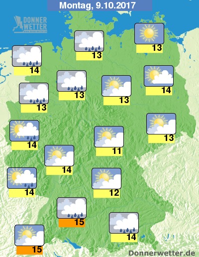 Nach Auflösung einiger morgendlicher Nebelfelder gibt es in Deutschland verbreitet eine Mischung aus kurzen sonnigen Phasen und dichteren Wolken. Gebietsweise fällt dabei etwas Regen, oder es gehen örtliche Schauer nieder. Am freundlichsten bleibt es vermutlich ganz im Nordosten des Landes. Die Höchsttemperaturen erreichen meist zwischen 10 und 17 Grad. Der Wind weht dabei meist nur schwach bis mäßig.
