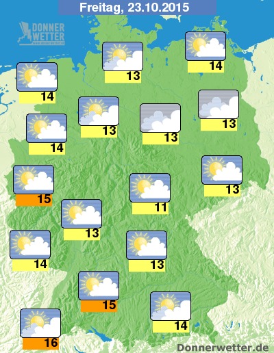 Am Samstag scheint nach Auflösung örtlicher Nebelfelder verbreitet die Sonne, dabei ziehen im Tagesverlauf jedoch vor allem über den Norden und später auch über die breite Mitte des Landes einige, meist lockere Wolken auf, es bleibt aber trocken bei Höchstwerten von 11 Grad auf Rügen und um 17 Grad im Oberrheingraben.