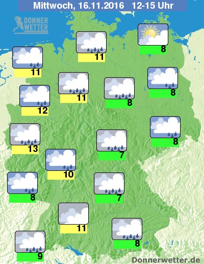 Am Nachmittag und in Richtung Abend Richtung Südosten viel Regen. Auch in weiten Teilen Deutschlands ist immer wieder mit Schauern zu rechnen. Der Himmel bleibt grau und weiterhin bedeckt.
