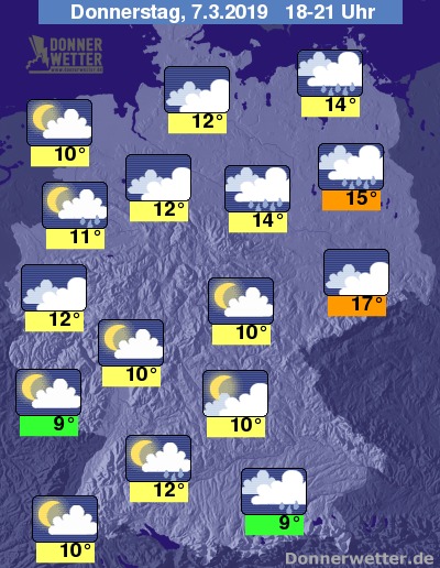 Bis Mitternacht klart der Himmel dann verbreitet auf, nur in Ostfriesland, sowie im südöstlichen Bayern halten sich noch einige Regenwolken.