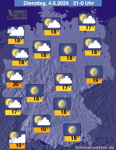 Höchstwerte am Nachmittag um 17 bis 24 Grad.