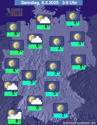 Die Temperaturen gehen in den frühen Morgenstunden zurück auf Werte um 8 bis 2 Grad.