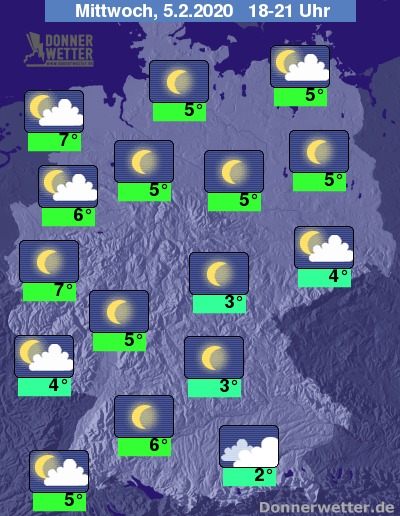 Bis zu den Frühstunden kühlt die Luft in der Nordhälfte auf 0 bis 4 Grad ab, in der Südhälfte gibt es teilweise Frost mit Werten knapp unterhalb des Gefrierpunktes. Südlich der Donau wird es noch kälter.