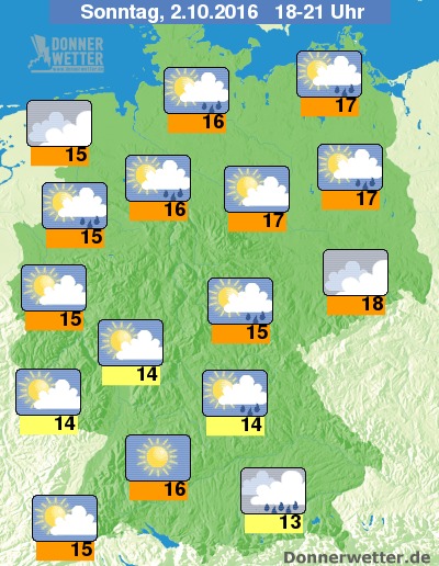 Heute Abend bleibt es über dem Südosten weiterhin bedeckt bei zum Teil längeranhaltendem Regen. Oft stark bewölkt mit einzelnen Schauern ist es vom Norden, über den Nordosten bis in den Osten des Landes. Im Westen und Südwesten, sowie in der Landesmitte ist es jedoch oft leicht oder aufgelockert bewölkt und dazu meist trocken. Die Temperatur liegt bei 13 Grad in Augsburg und bis 18 Grad in Dresden.