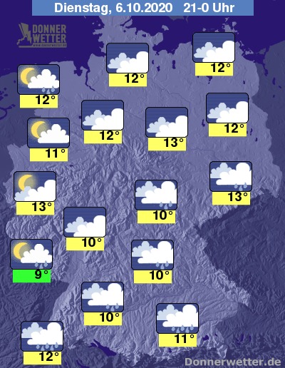 Bis Mitternacht ändert sich an der Wetterverteilung wenig. Im Westen lockert die Wolkendecke allerdings öfters mal auf und lässt ab und zu mal den Mond und einige Sterne leuchten.